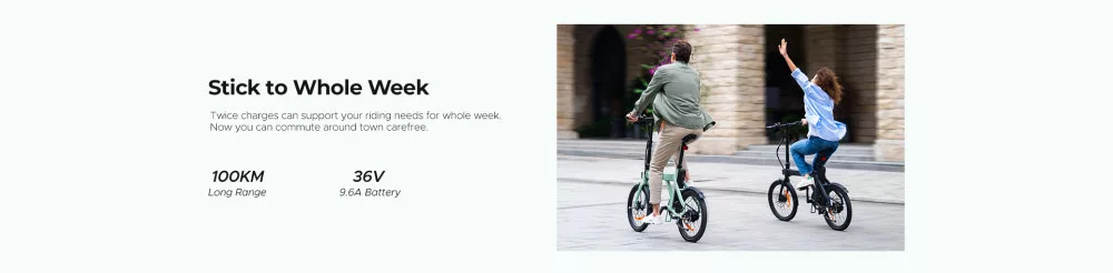 3 lépésben és 10 másodpercen belül összecsukható, annyira könnyű, hogy egyszerűen szállítható tömegközlekedési eszközökön, kézben könnyedén szállítható a 18,5 kg-os kerékpár, vagy az autóban is tárolható.