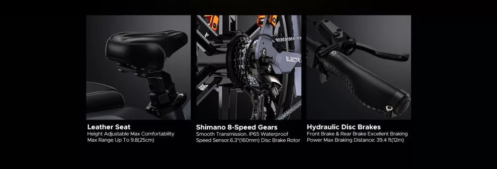 A SHIMANO váltó megbízható, könnyed és pontos sebességváltást biztosít bármilyen terepen vagy lejtőn. Zökkenőmentes átmenet 160 mm-es tárcsafék-motorral és IP65 vízálló sebességérzékelővel.