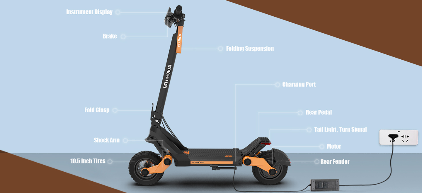 KUGOO Kirin G3 elektromos közlekedési eszköz, elektromos roller. Városi és vidéki közlekedésre kiváló, gyors, erős, dinamikus, strapabíró. Nagyságában kivitelezésében és minőségében felső középkategóriát képvisel a Kugoo KIRIN S4 A hátsó kerék meghajtása, a teleszkópos felfüggesztése a nehéz terepet is jól veszi. Nem akadály számára a padkáról történő le illetve felhajtás, villamossínek és egyéb akadályok. Az első lámpája jó megvilágítást biztosít és a kiegészítő lámpái pedig jól láthatóvá teszik a rollert az éjszaki használat során.