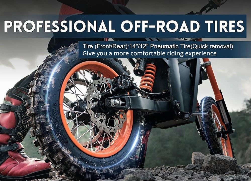 A páratlan tapadást és irányíthatóságot biztosító 14 colos első és 12 colos hátsó gumiabronccsal felszerelt Kugoo Wish 01 erős tapadása nagyfokú biztonságot nyújt kerékpározás közben, biztosítva, hogy magabiztosan kezelhess bármilyen terepet, és korlátlanul élvezhesd a tekerést.