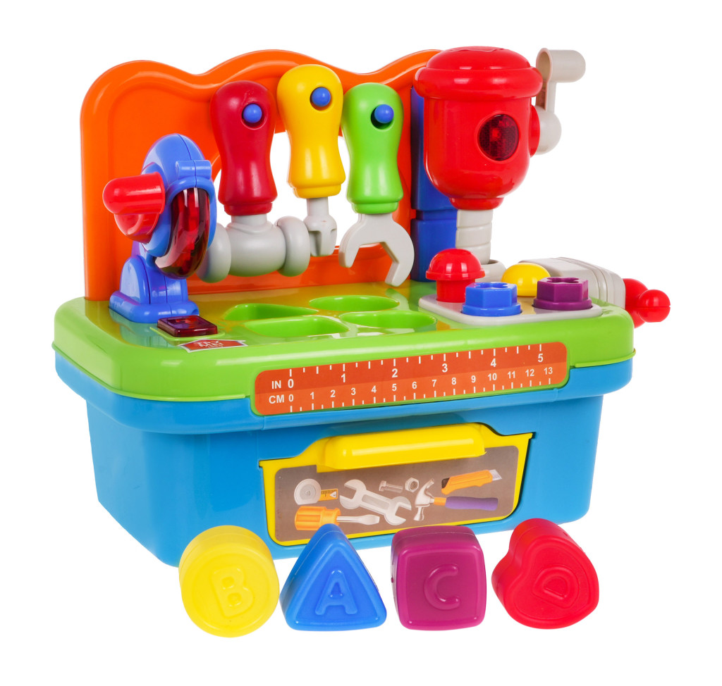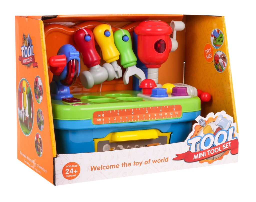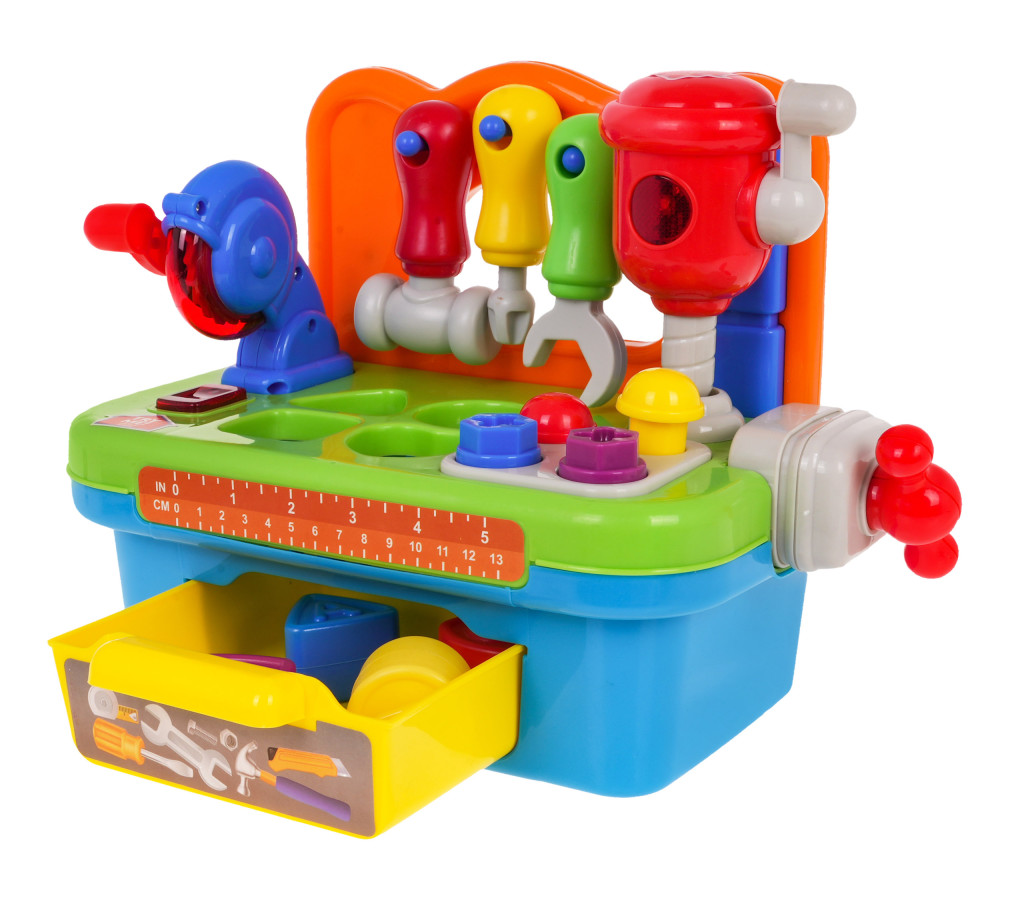 | | - stolik majsterkowicza, - młot udarowy, - młotek, - śrubokręt, - klucz francuski, - piła tarczowa, - 2 śruby, - 2 gwoździe, - 4 klocki, - szuflada na akcesoria. |