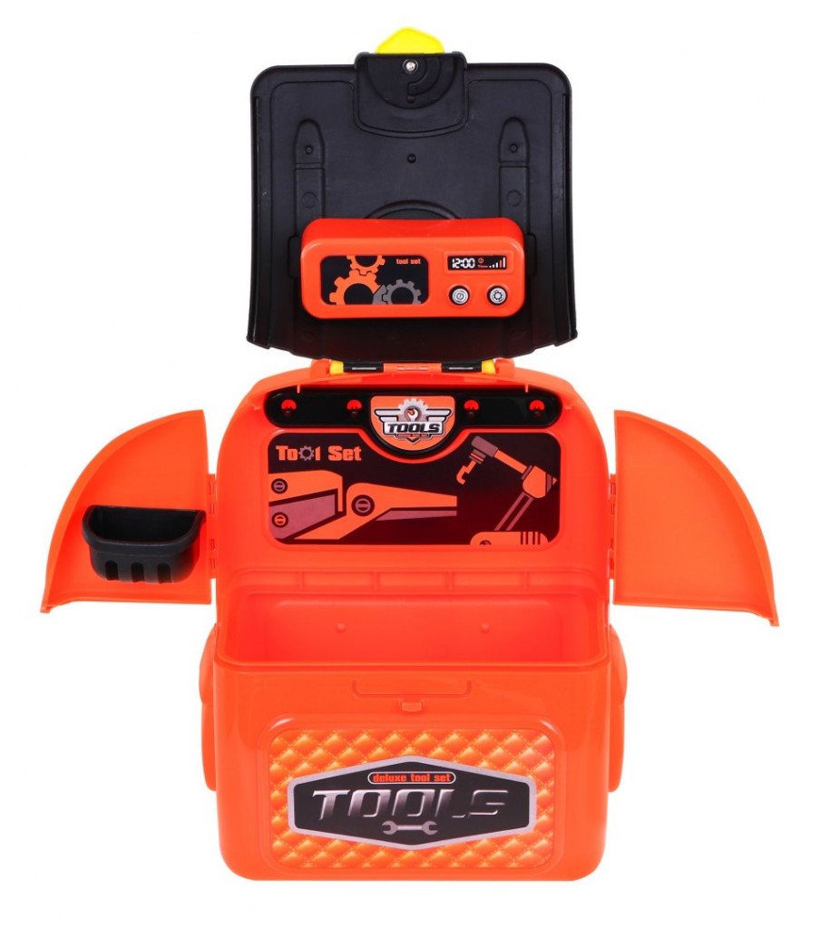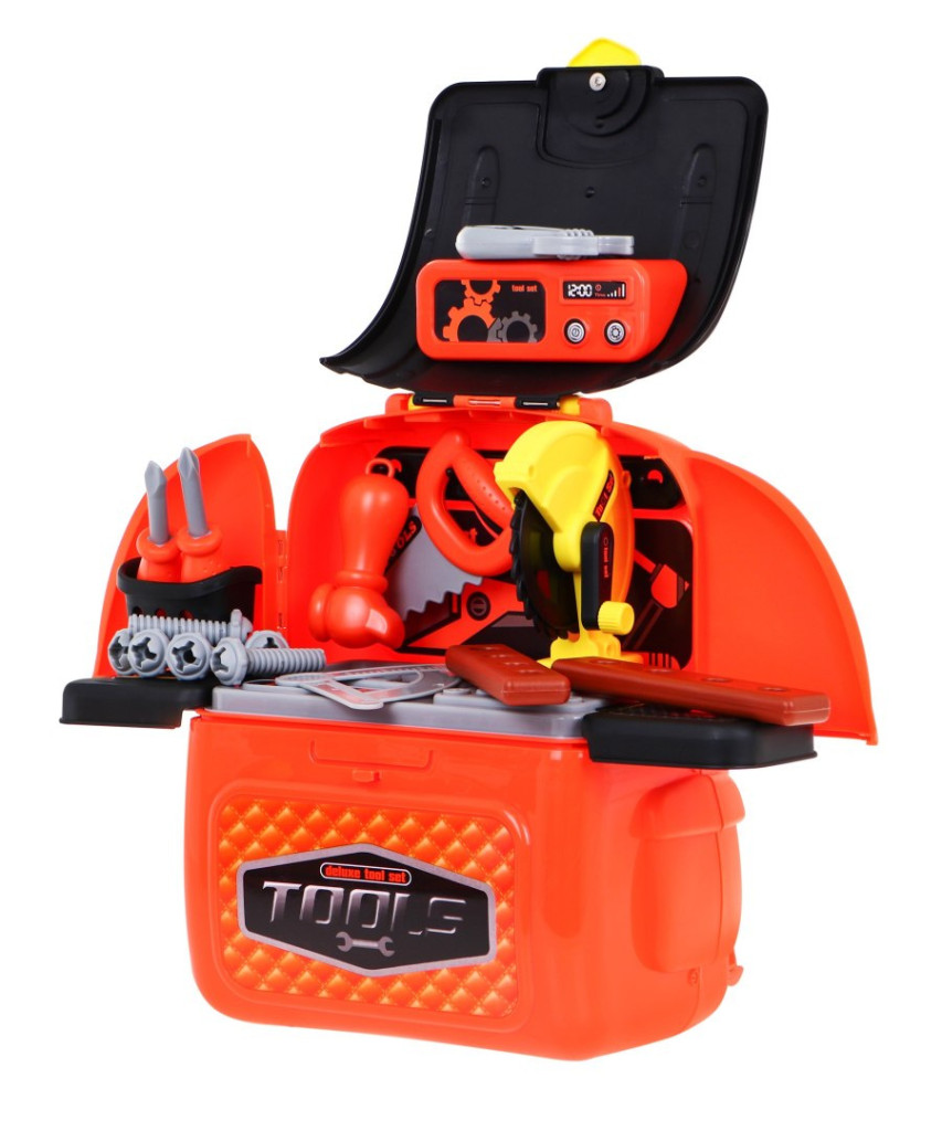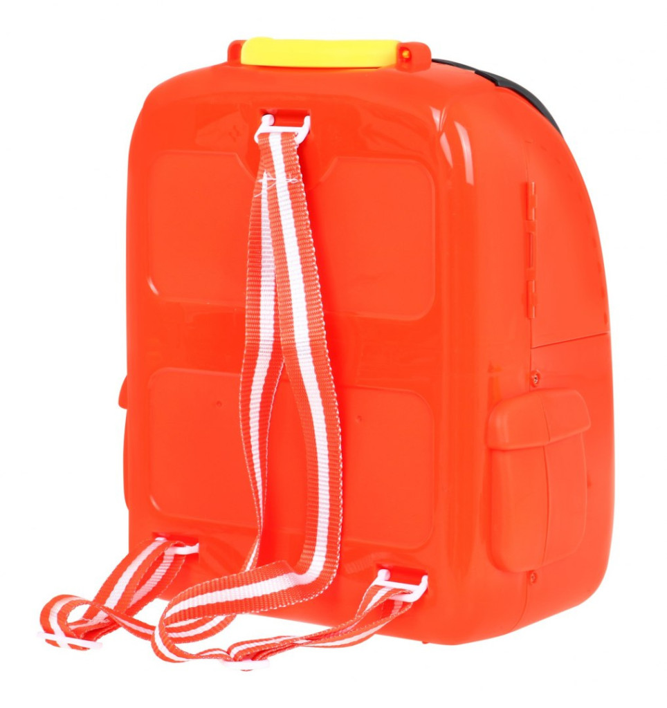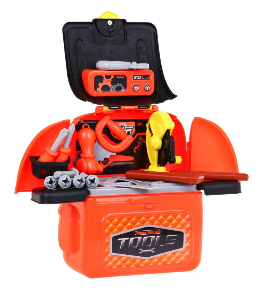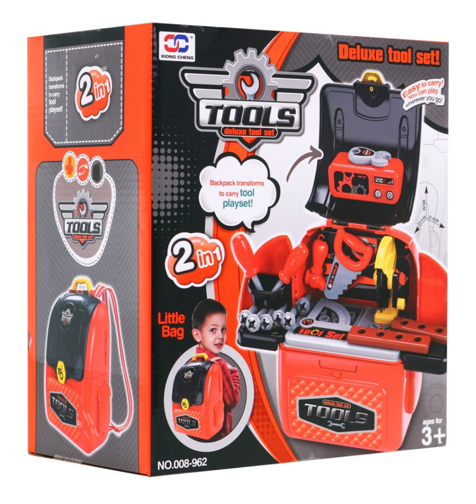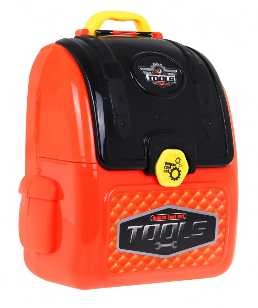 Plecak będący zarazem warsztatem to zabawka dla dzieci powyżej 3 – go roku życia. Plecak z narzędziami można zabrać dosłownie wszędzie, a po otworzeniu go i doczepieniu blatu, jest gotowy do użycia. Nie zajmuje dużo miejsca, jest przenośny i zawsze dostępny. Życzymy udanej zabawy.