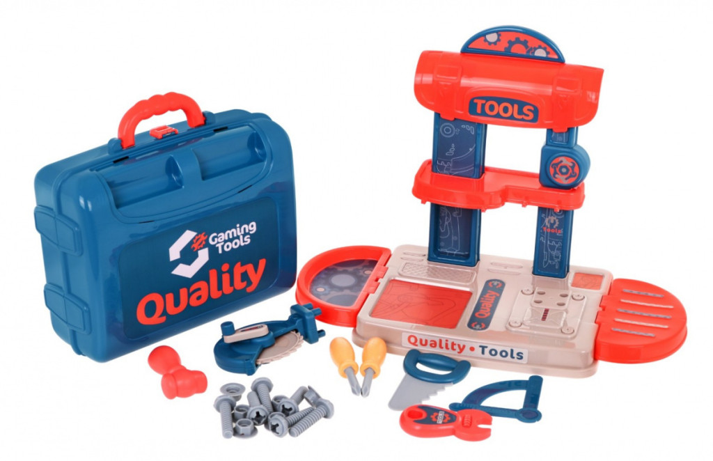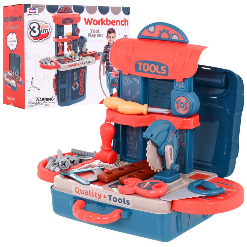 Warsztat 3w1 dla dzieci 3+ Walizka + Blat + Stolik + Narzędzia Akcesoria 21 el.