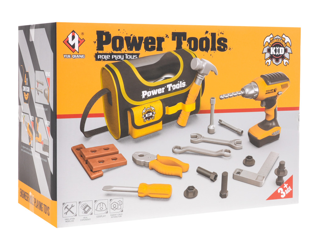 - wkrętarka ok. 15 cm x 17,5 cm x 5,5 cm, - torba na narzędzia ok. 25,3 cm x 17 cm x 11 cm, - nasadka do śrubokręta ok. 7 cm x 3 cm, - klucz płaski i oczkowy o wysokości ok. 15 cm - miarka kątowa ok. 13,5 cm x 8 cm x 1,5 cm, - młotek ok. 17,5 cm x 8 cm x 3 cm, - kombinerki ok. 14,5 cm x 5,5 cm x 2 cm, - wymienne bity ok. 9 cm długości, - śruby o długości ok. 5,5 cm, - uszczelki ok. 3 cm średnicy, - elementy mniejsze do wkręcania ok. 8 cm x 3,8 cm x 1 cm, element większy ok. 14 cm x 3 cm x 0,8 cm, - opakowanie ok. 24 cm x 17,5 cm x 12 cm. |